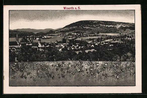 Künstler-AK Woerth s. S., Fernansicht vom Feld aus