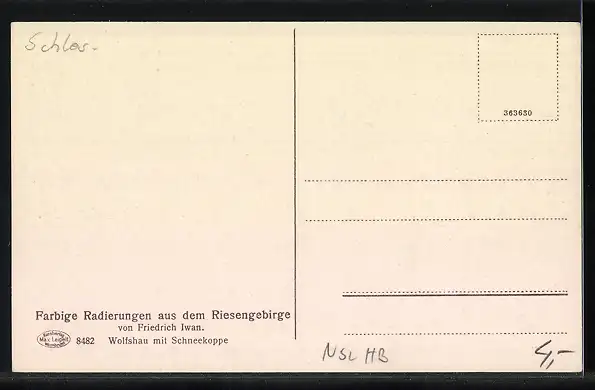 Personenbezogene Daten auf der Rückseite der Karte wurden durch blauen Textmarker unkenntlich gemacht. Die blauen Stellen sind auf die Vorderseite durchgeweicht und wirken sich negativ auf das Postkartenfoto aus
