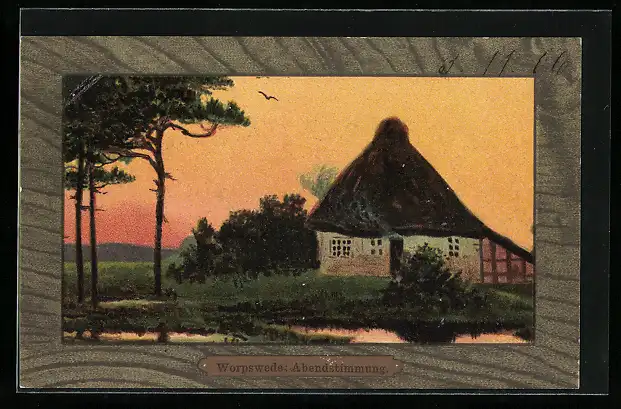Künstler-AK Worpswede, Abendstimmung in schönem Rahmen