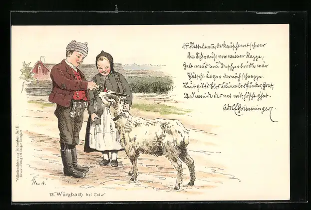 Künstler-AK Würzbach, Junges Paar mit einer Ziege