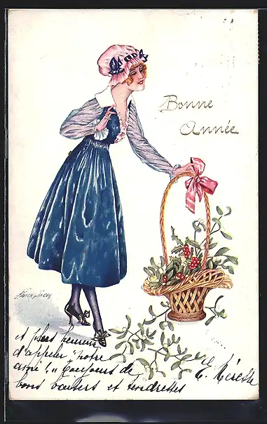 Künstler-AK Xavier Sager: Frau mit einem Korb voller Mistelzweige