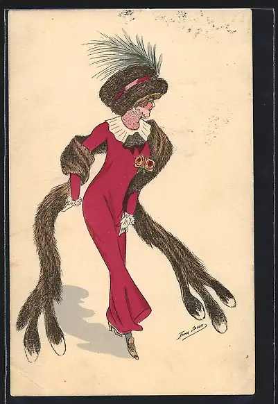 Künstler-AK Xavier Sager: Schöne Frau mit langem Pelz