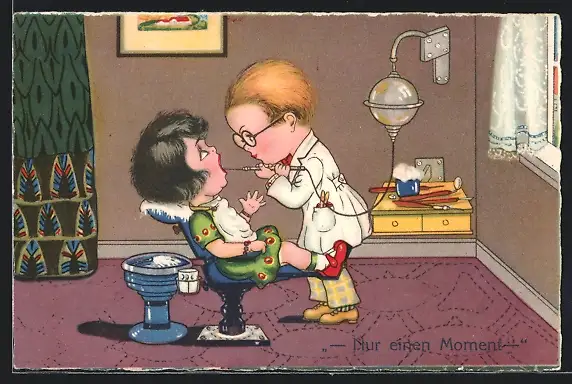 Künstler-AK Zahnarzt, die Behandlung eines Zahns
