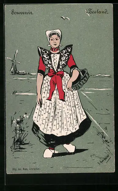 Künstler-AK Zeeland, Holländerin in Tracht