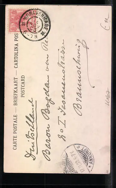 alte Ansichtskarte, gelaufen 1903, Eckknick re. unten, guter Zustand