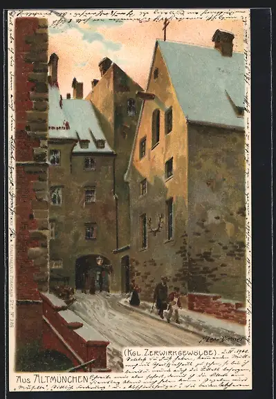 Künstler-AK Zeno Diemer: Alt-München, Strassenpartie am Kgl. Zerwirkgewölbe
