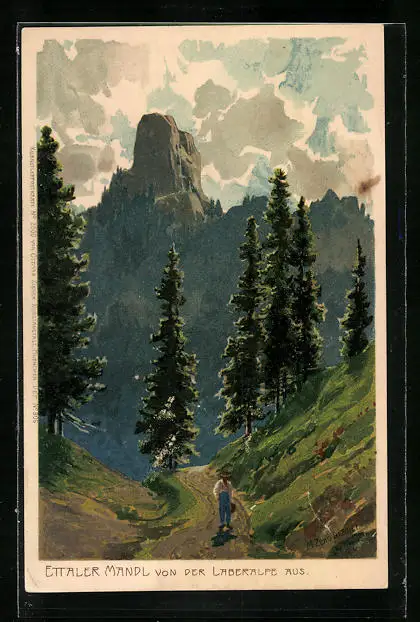 Künstler-AK Zeno Diemer: Ettaler Mandl von der Laberalpe aus