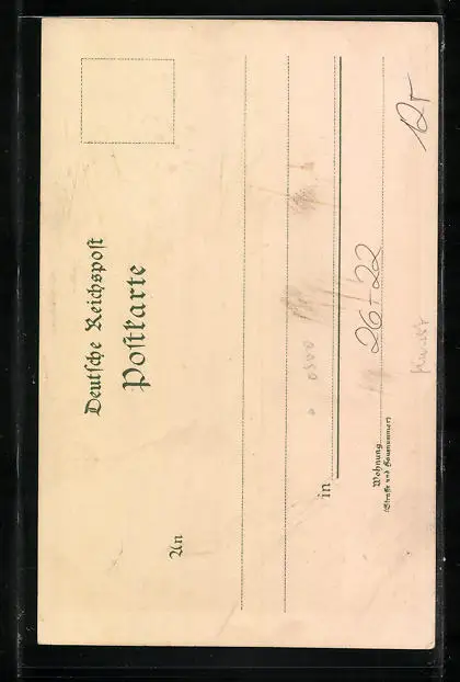 Personenbezogene Daten auf der Rückseite der Karte wurden durch blauen Textmarker unkenntlich gemacht. Die blauen Stellen sind auf die Vorderseite durchgeweicht und wirken sich negativ auf das Postkartenfoto aus