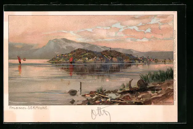 Künstler-AK Zeno Diemer: Halbinsel Sermione