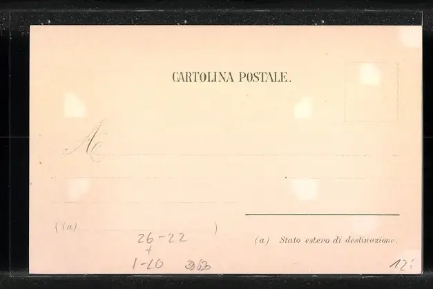 Personenbezogene Daten auf der Rückseite der Karte wurden durch blauen Textmarker unkenntlich gemacht. Die blauen Stellen sind auf die Vorderseite durchgeweicht und wirken sich negativ auf das Postkartenfoto aus