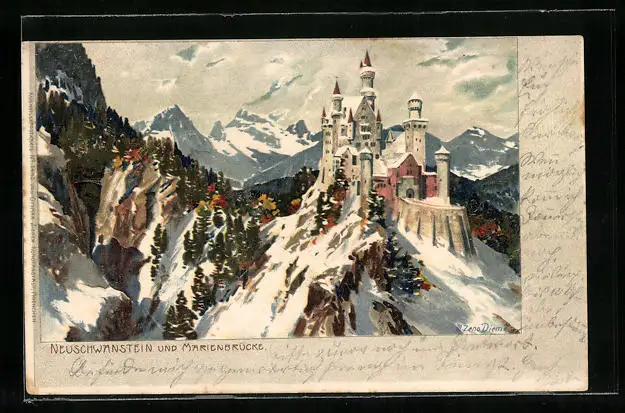 Künstler-AK Zeno Diemer: Neuschwanstein und Marienbrücke