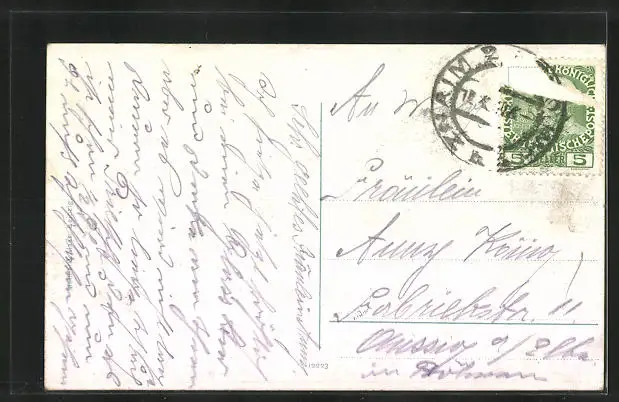alte Ansichtskarte, gelaufen, Briefmarke tw. entfernt, rückseitig Klebe- und Papierreste, Stempelspur, guter Zustand