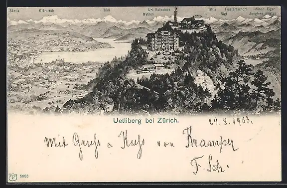 Künstler-AK Zürich, Blick auf den Uetliberg