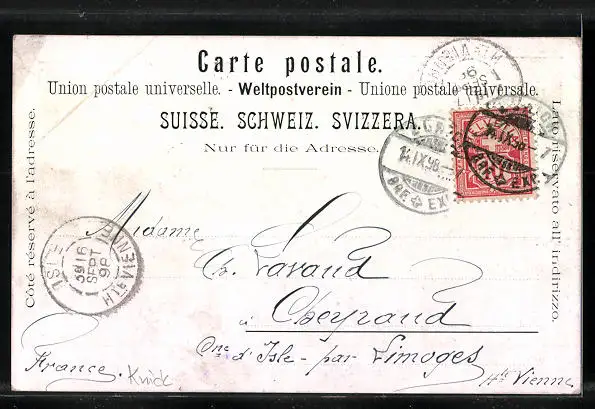 alte Ansichtskarte, gelaufen 1898, Eckknick oben re., guter Zustand
