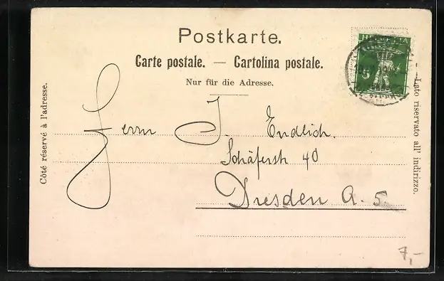alte Ansichtskarte, gelaufen 1899, Eckknick re. oben, guter Zustand