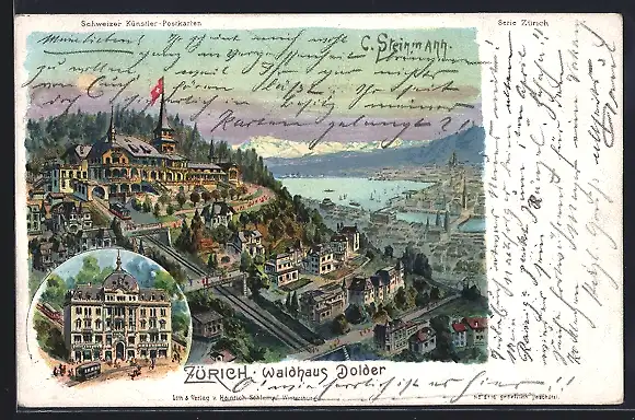 Künstler-AK Zürich, Waldhaus Dolder, Teilpartie