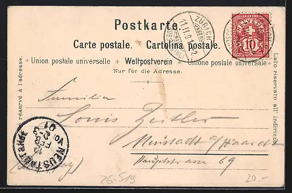 alte Ansichtskarte, gelaufen 1901, guter Zustand