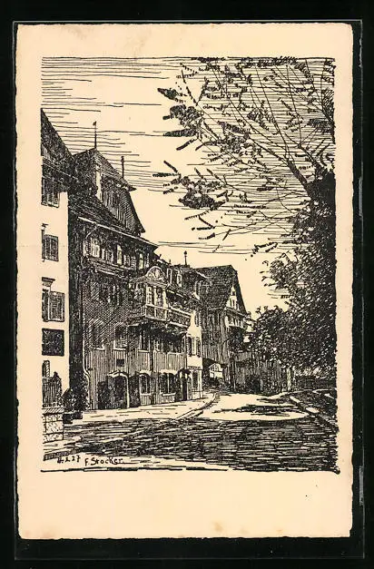 Künstler-AK Zug, Partie beim Kaibenturm
