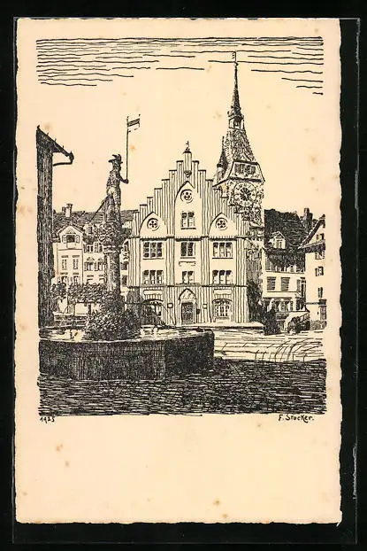 Künstler-AK Zug, Zytturm und Stadtkanzlei