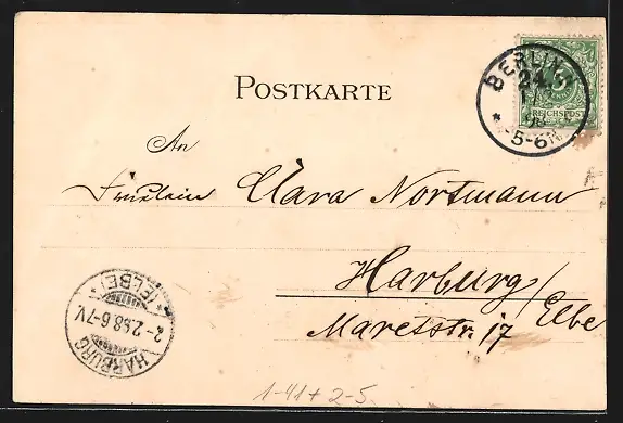 alte Ansichtskarte, gelaufen 1898, Bugspuren re. oben, Eckknick re. unten, guter Zustand