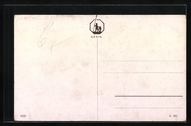 Personenbezogene Daten auf der Rückseite der Karte wurden durch blauen Textmarker unkenntlich gemacht. Die blauen Stellen sind auf die Vorderseite durchgeweicht und wirken sich negativ auf das Postkartenfoto aus