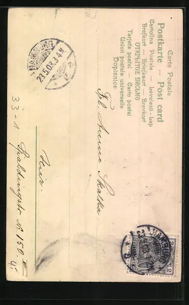 alte Ansichtskarte, gelaufen 1903, Stempelspur, guter Zustand