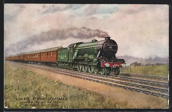 Künstler-AK englische Eisenbahn Flying Scotsman