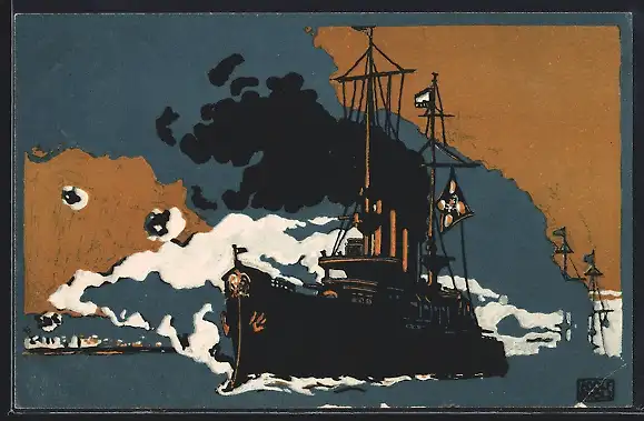 Künstler-AK sign. Adolf Scholz: Kriegsschiffe in Fahrt