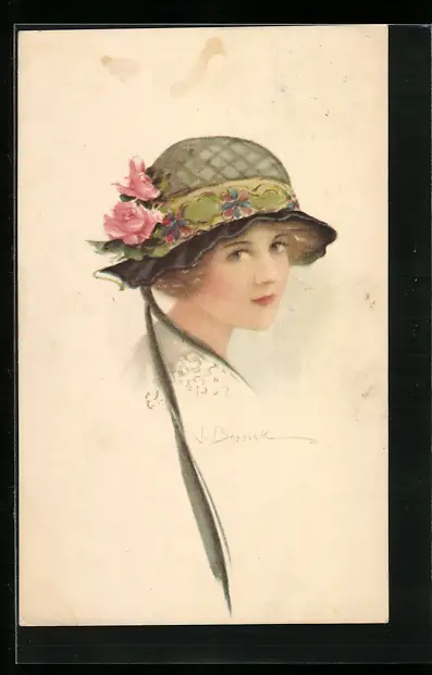 Künstler-AK sign. Barrick: Hübsche Dame mit Hut