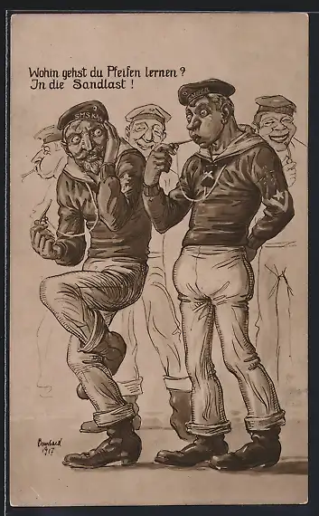 Künstler-AK sign. Bernhard: Zwei Matrosen mit Trillerpfeifen
