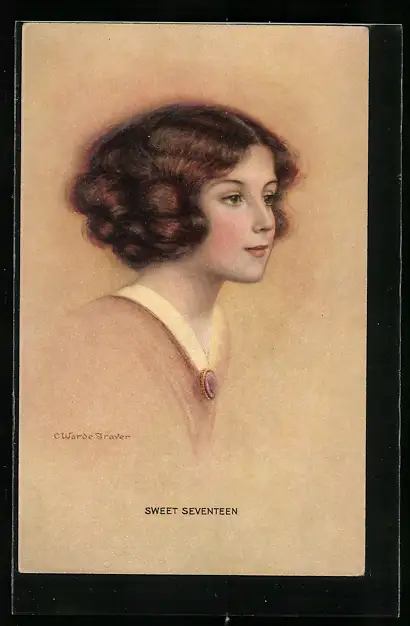 Künstler-AK sign. C. Warde-Traver: Mädchenkopf mit braunem Haar