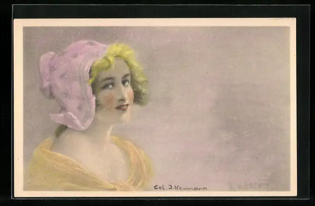 Künstler-AK sign. Col. J. Neumann: Dame mit Haube