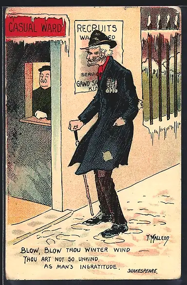 Künstler-AK sign. F. Macleoy: Älterer Mann vor dem Schalter