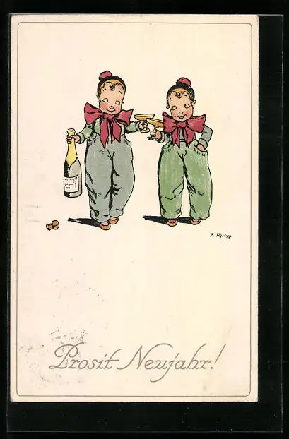 Künstler-AK sign. F. Philipp: Ein Prosit auf das neue Jahr