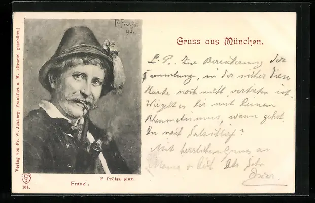 Künstler-AK sign. F. Prölss: Franz`l mit Pfeife und Hut