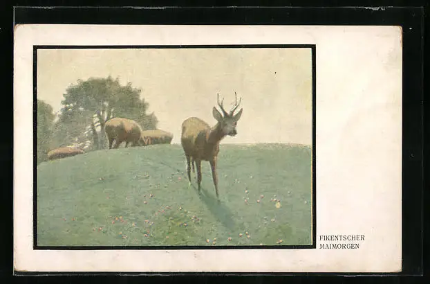 Künstler-AK sign. Fikentscher, Mairmorgen, Rehe auf einer Wiese