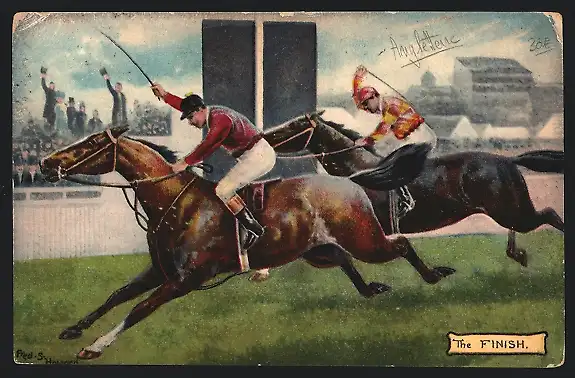 Künstler-AK sign. Fred S. Howard: The Finish, beim Pferderennen