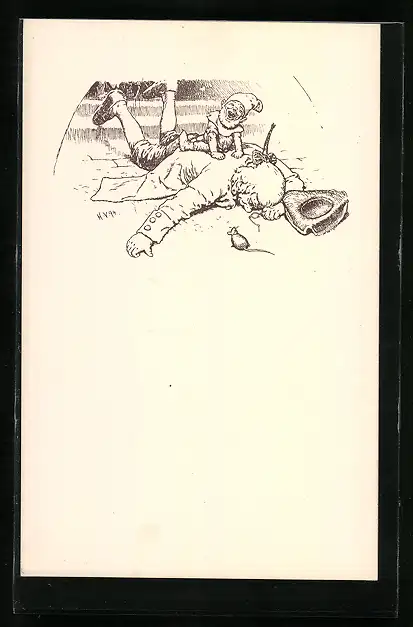 Künstler-AK sign. Hermann Vogel: Zwerg sitzt auf einem liegenden Herrn