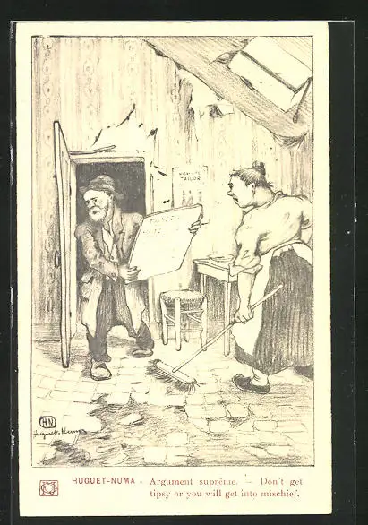 Künstler-AK sign.: Huguet-Numa, Argument Supreme, Don`t get tipsy or you will get into mischief