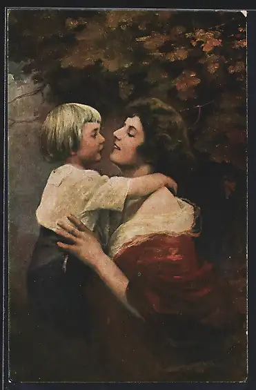 Künstler-AK sign. Jansen: Mutter umarmt ihren Sohn