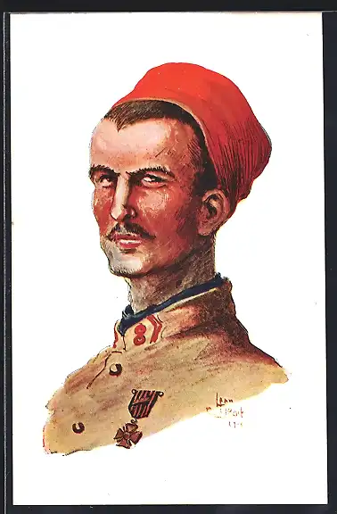 Künstler-AK sign. Jean Droit: Französischer Infanterist Turco in Uniform mit Orden