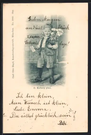 Künstler-AK sign. O. Kirberg: Junge mit Blumen