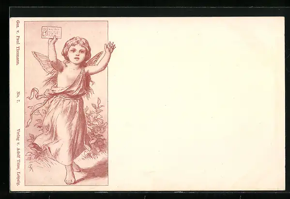 Künstler-AK sign. Paul Thumann: Ein kleiner Engel mit einem Brief