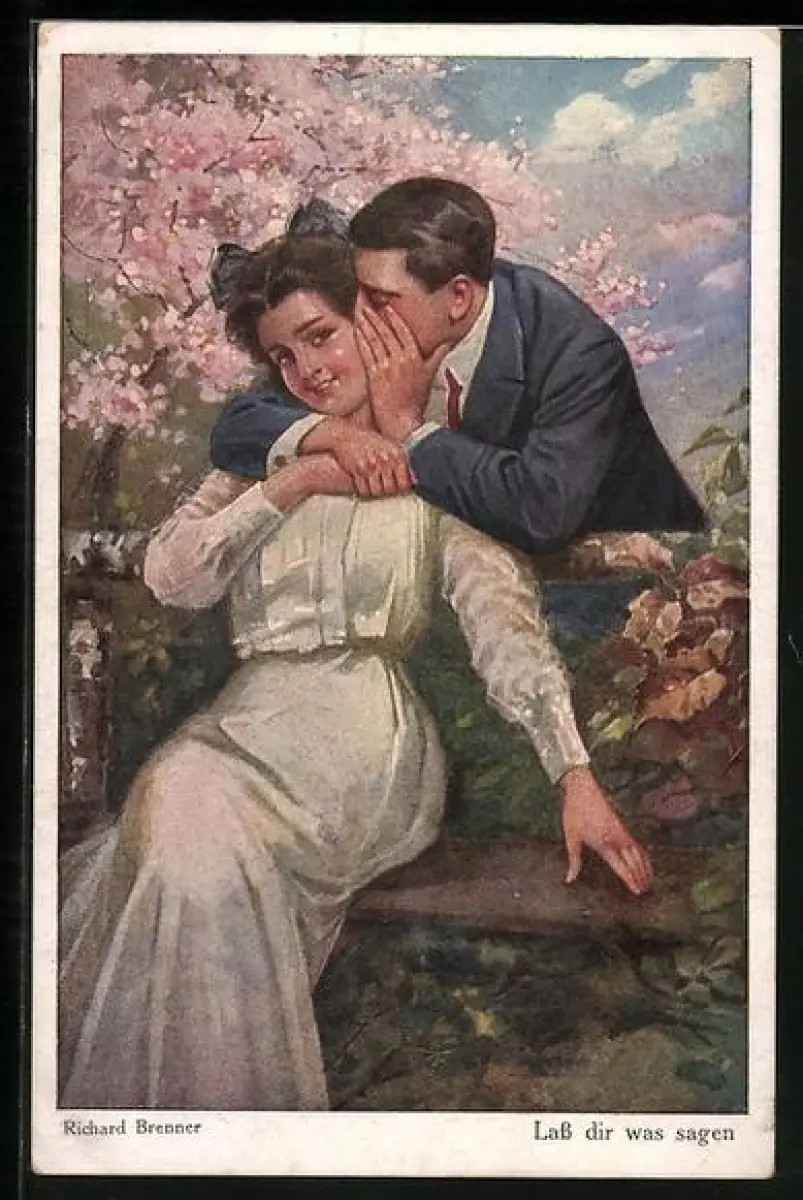 Künstler-AK sign. Richard Brenner: Herr flüstert Dame ins Ohr