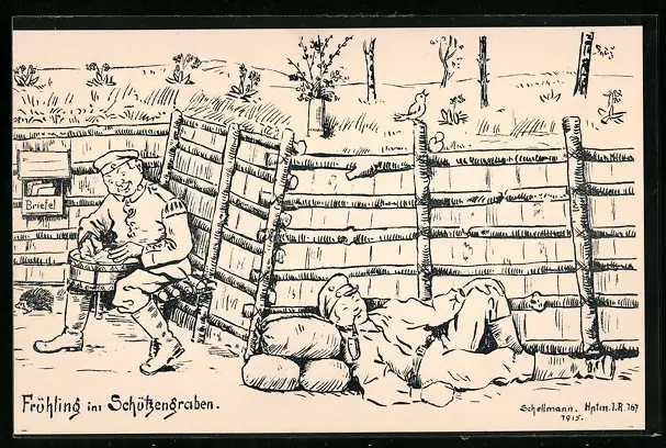 Künstler-AK sign. Schellmann: Frühling im Schützengraben