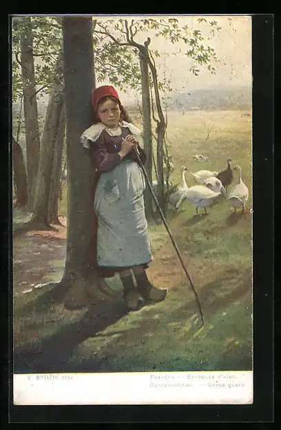 Künstler-AK sign. V. Brisik: Gänsemädchen