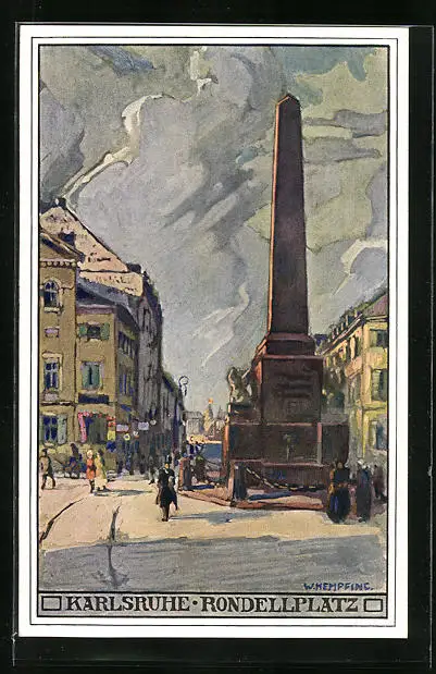 Künstler-AK sign. W. Hempfing: Karlsruhe, Am Rondellplatz