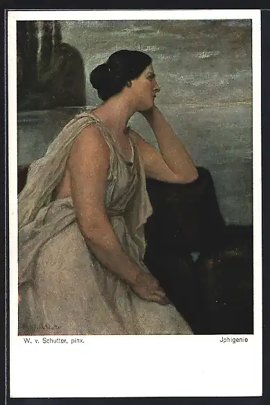 Künstler-AK sign. W. v. Schutter: Iphigenie blickt aufs Meer