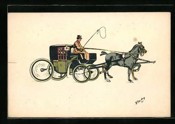 Künstler-AK sign. Wr. de May: Zweispännige Kutsche