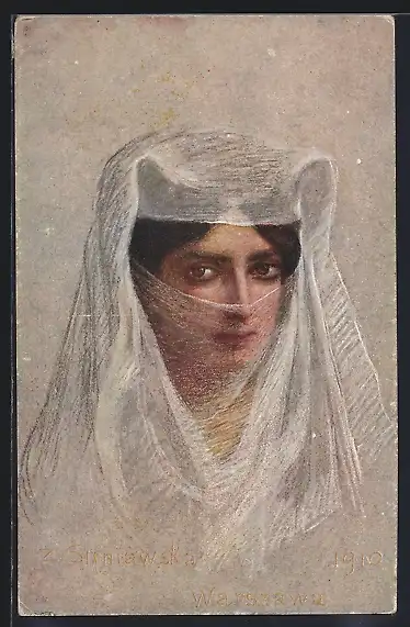 Künstler-AK sign. Z. Sieniawska: Junge Frau mit einem Schleier vor dem Gesicht